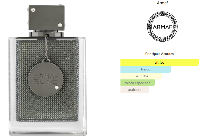 Club de Nuit Bling de Armaf é um perfume Amadeirado Aromático Compartilhável. Esta é uma nova fragrância. Club de Nuit Bling foi lançado em 2025. A nota de topo é: Cítricos. As notas de coração são: Prisma Floral e Poeira Estelar. As notas de fundo são: Madeiras Aveludadas e Baunilha.