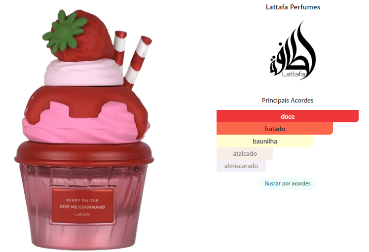 Berry On Top de Lattafa Perfumes é um perfume Floral Frutado Gourmand Feminino. Esta é uma nova fragrância. Berry On Top foi lançado em 2025. O perfumista que assina esta fragrância é Dalia Izem. As notas de topo são: Morango e Creme de Chantilly. As notas de coração são: Geleia de Morango, Açúcar e Flores Brancas. As notas de fundo são: Baunilha e Almíscar.